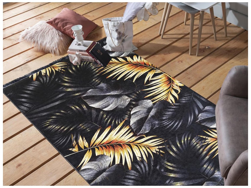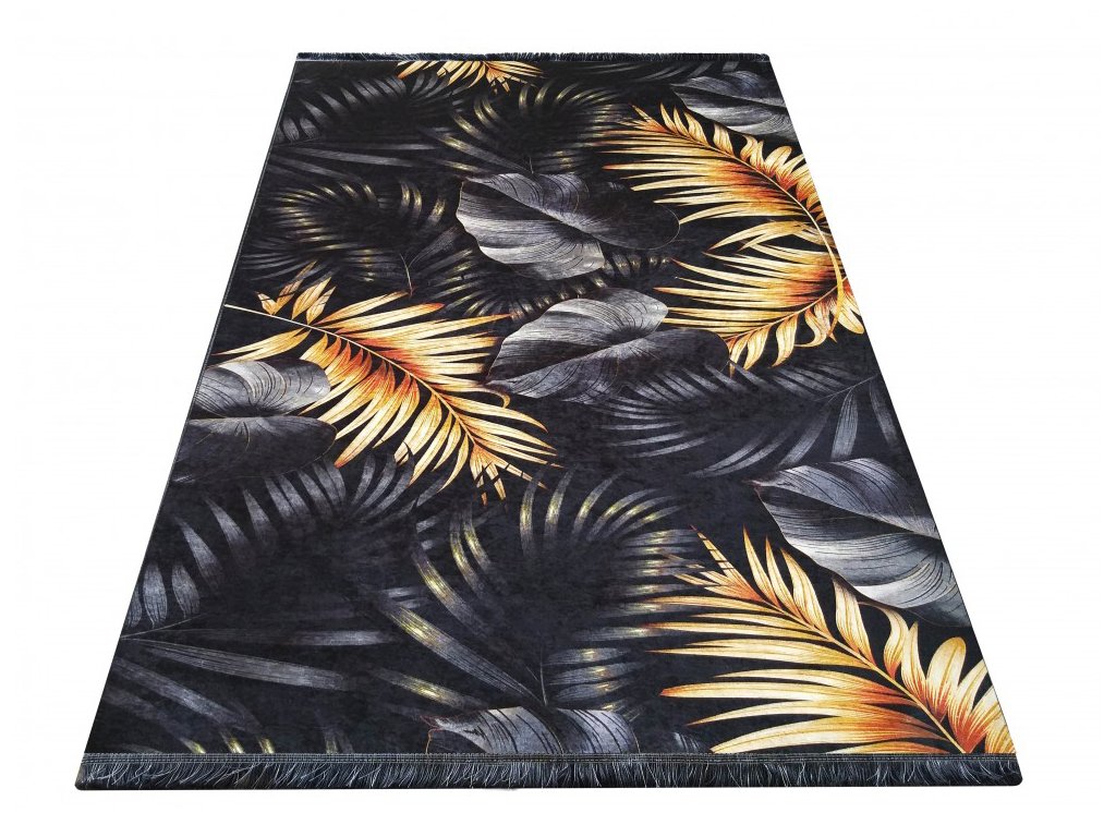 Cvjetni crni tepih Norm je prekrasan protuklizni tepih koji će uljepšati vaš interijer i istovremeno vam osigurati maksimalnu udobnost i sigurnost. Cvjetni uzorci primijenjeni na tepihu privući će svakoga na prvi pogled. Elegantni crni tepih izrađen je samo od kvalitetnih materijala, zahvaljujući čemu je čvrst i izdržljiv. Može se koristiti na frekventnim mjestima u interijeru, posebno zato što je to tepih koji se može prati u perilici na 30°.