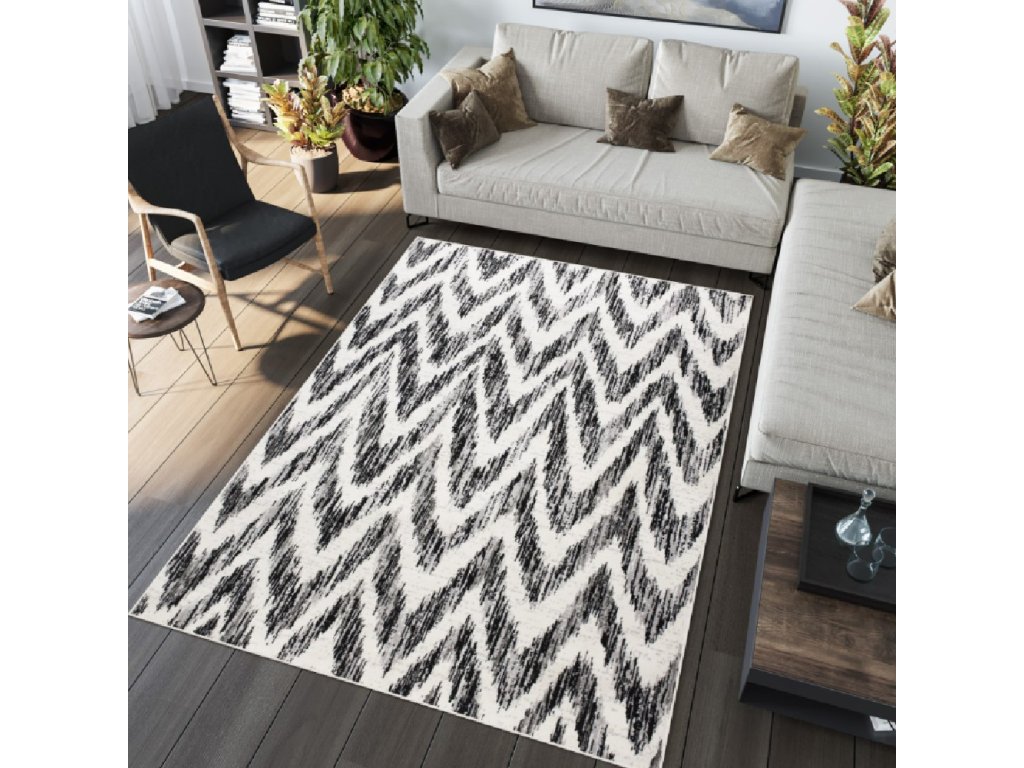 Dizajnerski tepih Strapo je izvrstan dodatak za dnevni boravak, radnu sobu, spavaću sobu ili dječju sobu. Crno-bijeli "cik-cak" uzorak savršeno će upotpuniti izgled vašeg interijera. Tepih je izrađen od 100 % polipropilenskog vlakna, zahvaljujući čemu je ugodan i mekan na dodir. Za njegovu izradu korišteni su visokokvalitetni materijali, koji su otporni na deformacije i razne promjene boje. Tepih je zahvaljujući niskoj visini vlakna pogodan za podno grijanje.