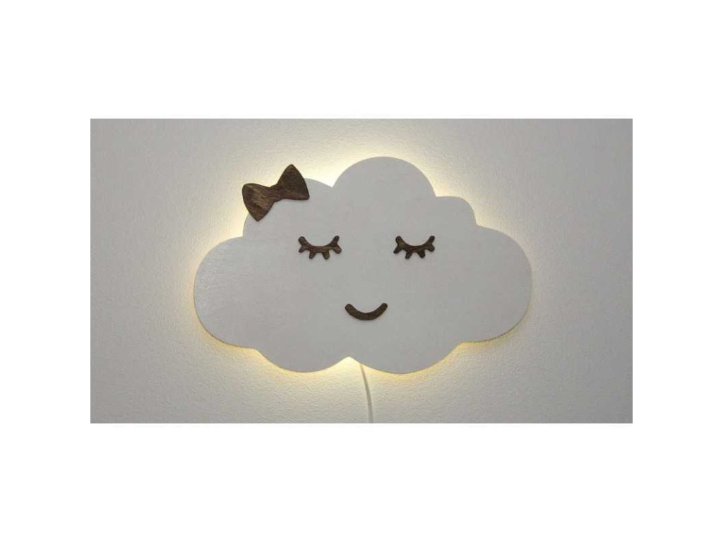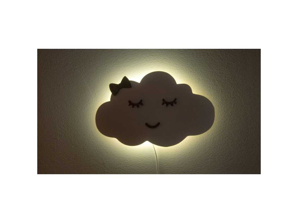 Dječja ručno izrađena lampica u obliku oblaka s mašnom uklopit će se u svaku djevojačku sobu i vašem djetetu biti vjernom prijateljicom pri večernjem uspavljivanju. Prigušeno osvjetljenje osigurat će da se vaše dijete ne boji pri uspavljivanju. Osvjetljenje je vrlo nježno i ne ometa san djeteta. Lampica je energetski štedljiva i osigurana protiv znatiželjne manipulacije dječjih ruku s električnim komponentama lampe.