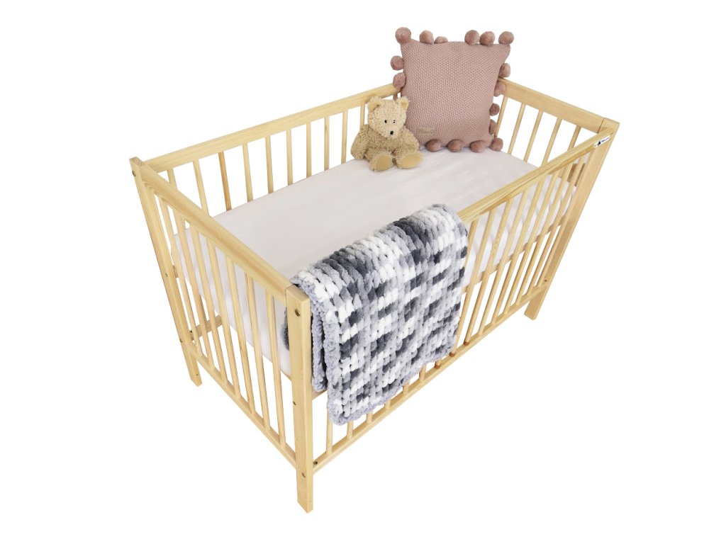Dječji krevetić u prirodnom izdanju izrađen je od visokokvalitetne borovine. Odlikuje se svojom čvrstom konstrukcijom i stabilnošću. Ono što ćete sigurno cijeniti je njegova funkcija podešavanja dna na tri razine (24, 38 i 53 cm). Krevetić također ima tri uklonjive prečke. S krevetićem ćete sigurno biti zadovoljni i vi i vaša beba.