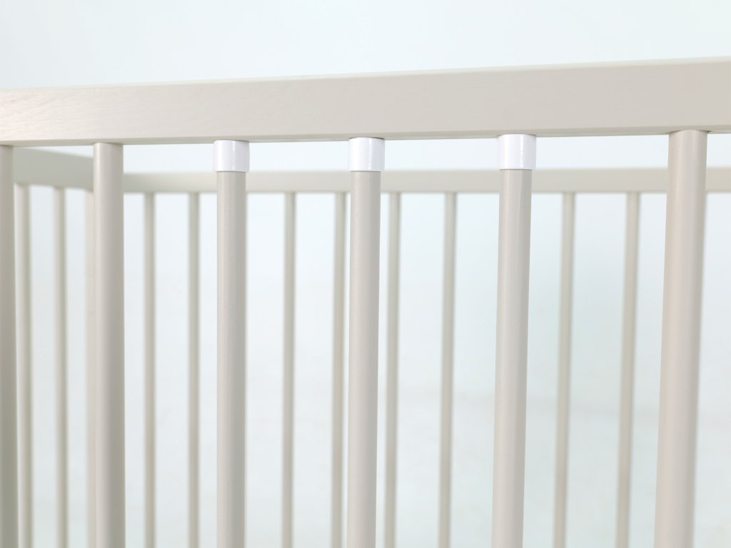 Jedna od glavnih prednosti krevetića Kubulo je mogućnost podešavanja visine dna u tri razine (24, 38 i 53 cm). Ova funkcija omogućuje prilagodbu trenutnim potrebama vašeg djeteta. Krevetić 120x60 također je opremljen trima odvojivim prečkama, koje omogućuju starijem djetetu da se udobno popne i vrati natrag u krevetić.