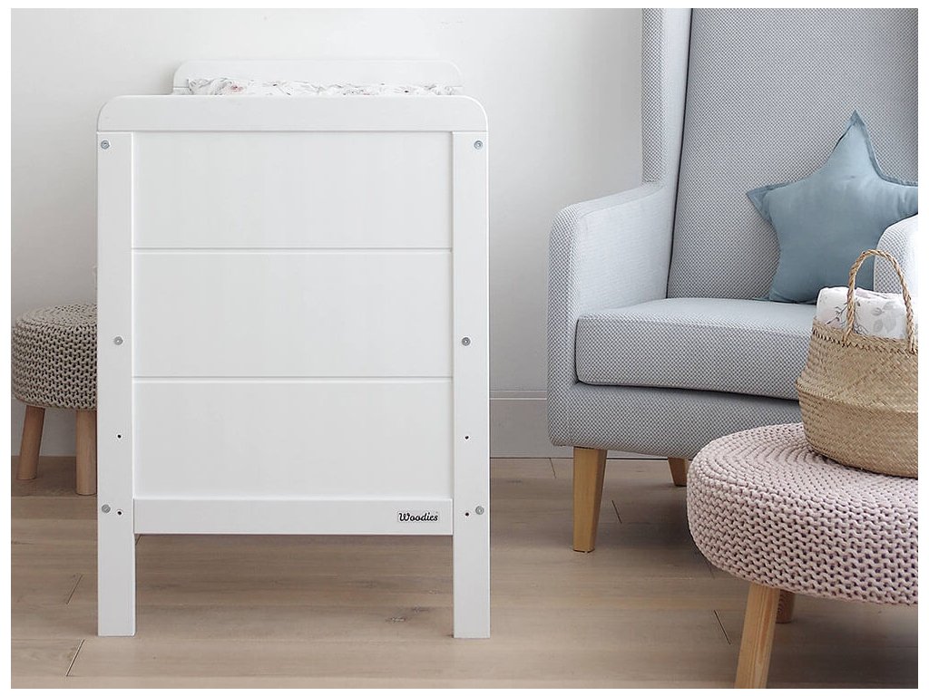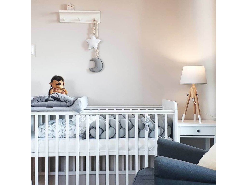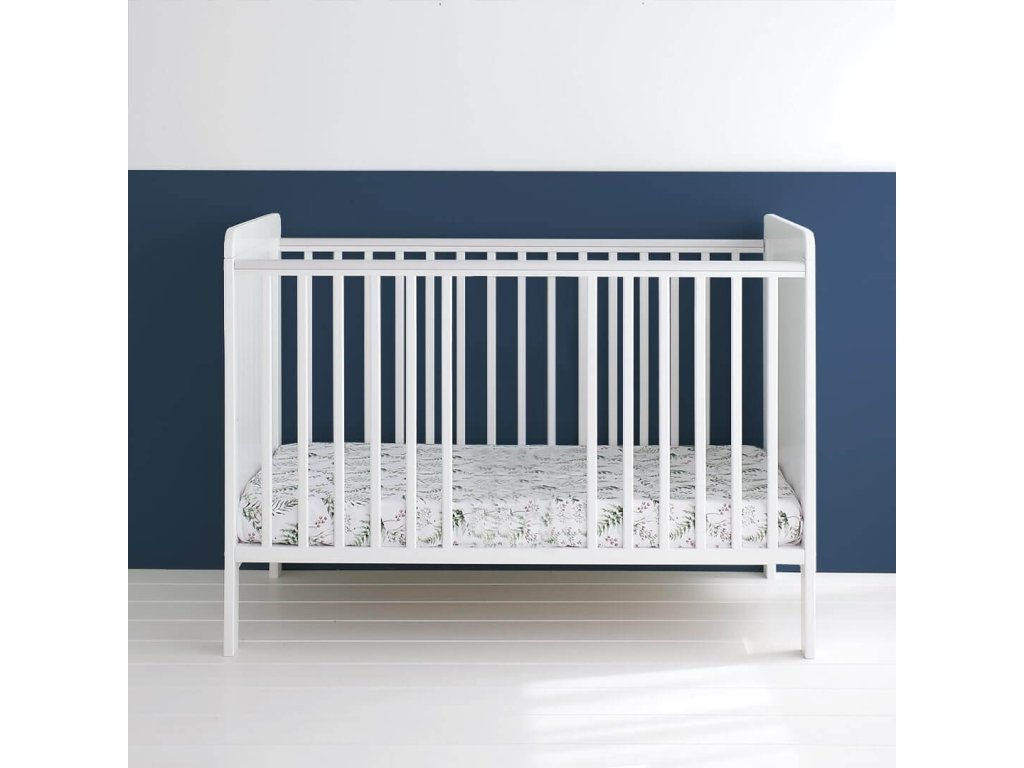 Dječji krevetić Modern Cot 120x60 cm je izrađen od kvalitetnog masivnog bora i MDF-a. Krevetić je prekriven s dva sloja certificirane boje u polumat bijeloj boji i na čelima krevetića s vodoravnim linijama. Krevetić ima podesivo dno u tri visine i tri uklonjive bočne prečke. Gornje bočne letvice su zaštićene grizaljkama koje sprječavaju rizik da dijete grize ili liže boje. Njegova montaža je vrlo jednostavna.