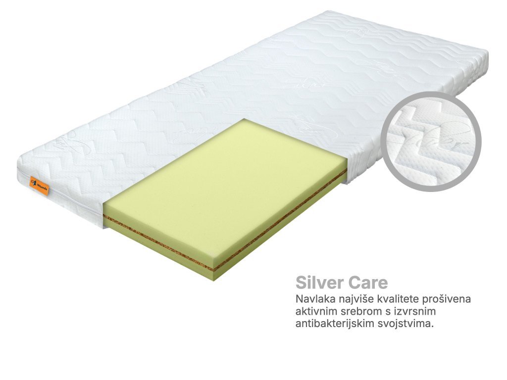 Dječji madrac s kokosovim vlaknima opremljen je kvalitetnom navlakom Silver, koja je protkana srebrnim vlaknom. Srebro je poznato po svojim prirodnim antibakterijskim svojstvima, čime pomaže ograničiti razvoj bakterija i grinja. Navlaka je skidiva i periva u perilici, što će svaki roditelj cijeniti pri redovnom održavanju. Madrac je tako prikladan i za djecu s osjetljivom kožom ili sklonošću alergijama. Navlaka madraca izrađena je od ugodnog materijala, a tip prošivanja može se razlikovati prema trenutnoj dostupnosti.