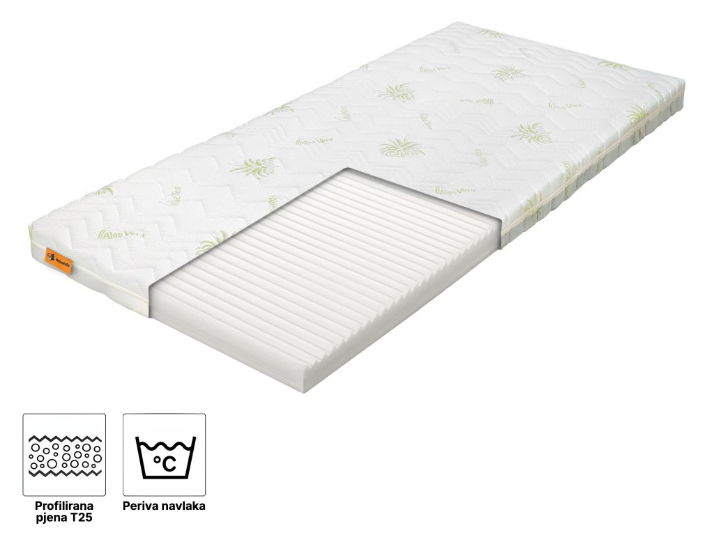 Sastav materijala: profilirana poliuretanska pjena T25, navlaka Aloe Vera