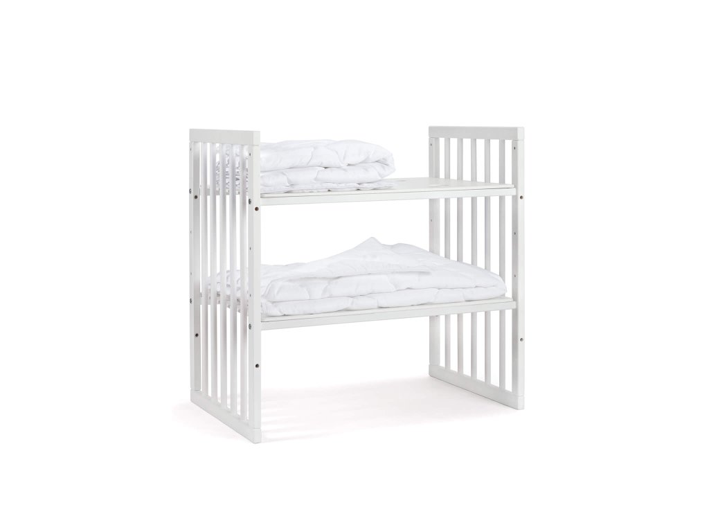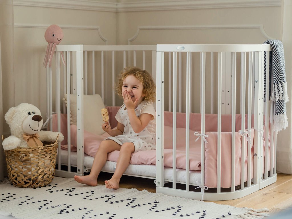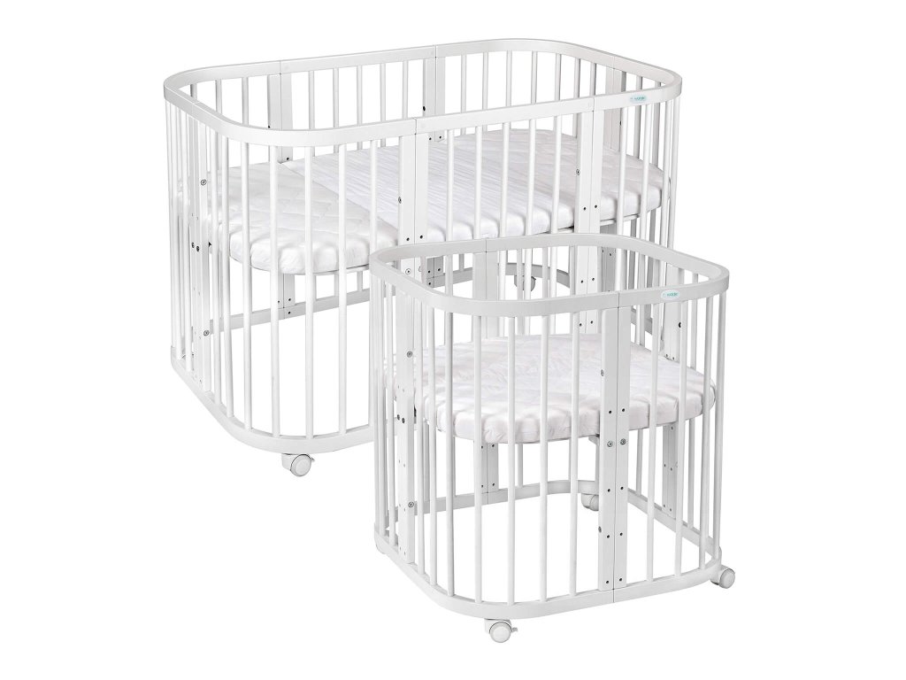 Kako dijete raste, treba više prostora. Iz tog razloga se od otprilike 6 do 36 mjeseci preporučuje spojiti sve dijelove u veći krevetić. Kada smanjite podnicu na najnižu razinu, dobit ćete igralište ili niski bijeli krevetić, u koji dijete može samostalno ući. Kada dijete preraste krevetić, možete ga ponovno rastaviti na tri dijela. Dobit ćete dva stolca i stol, za kojim se djeca mogu igrati, crtati ili jesti.
