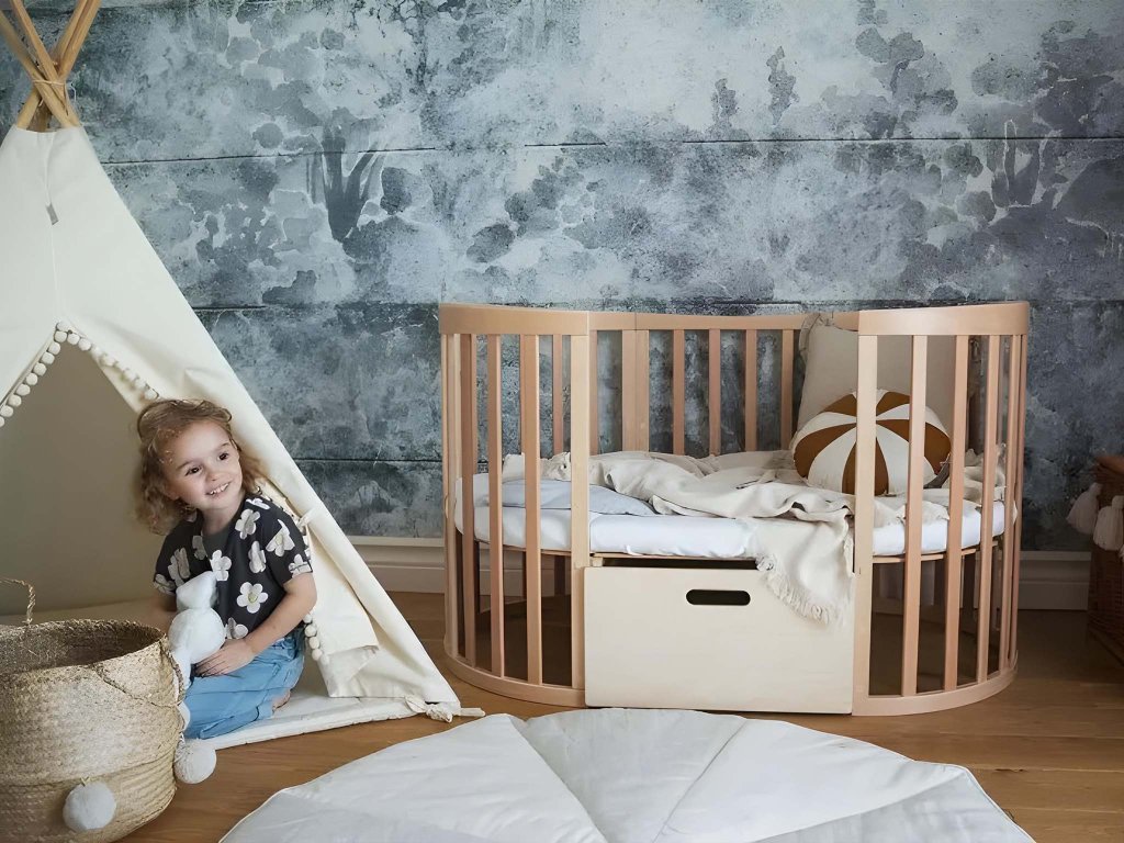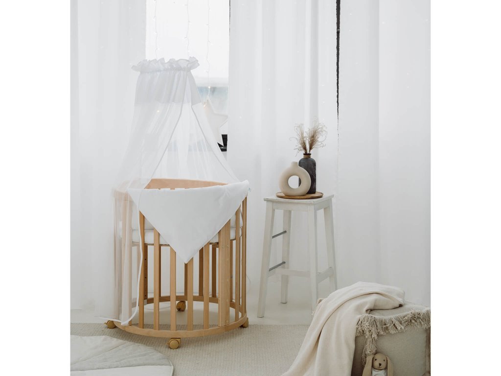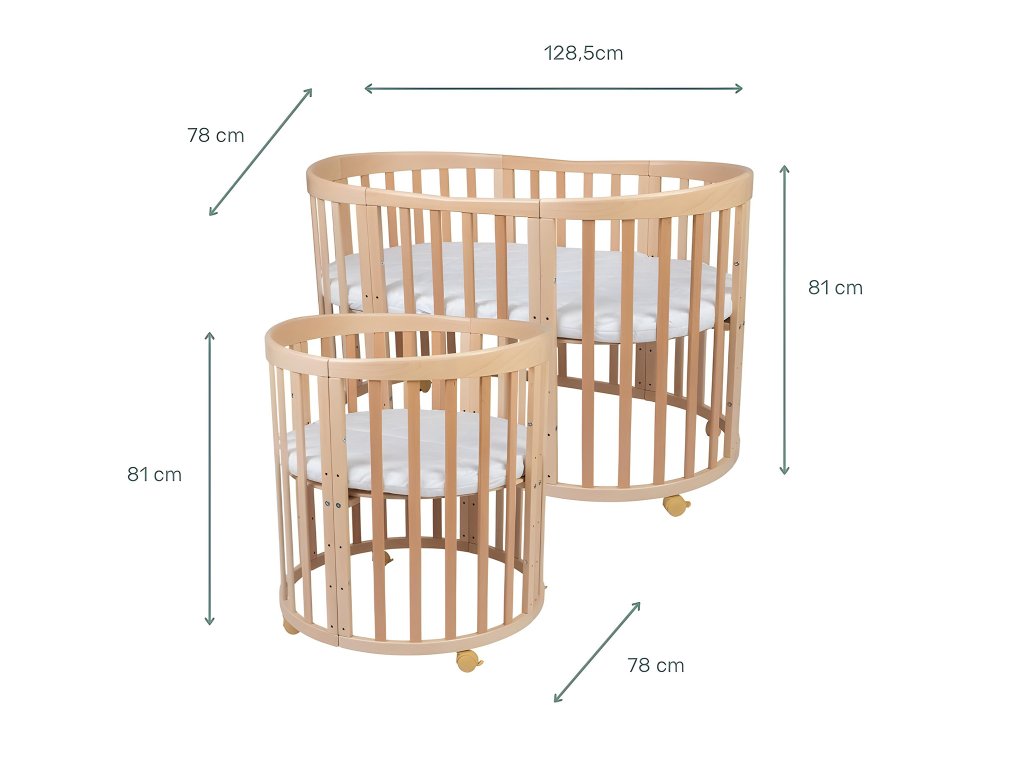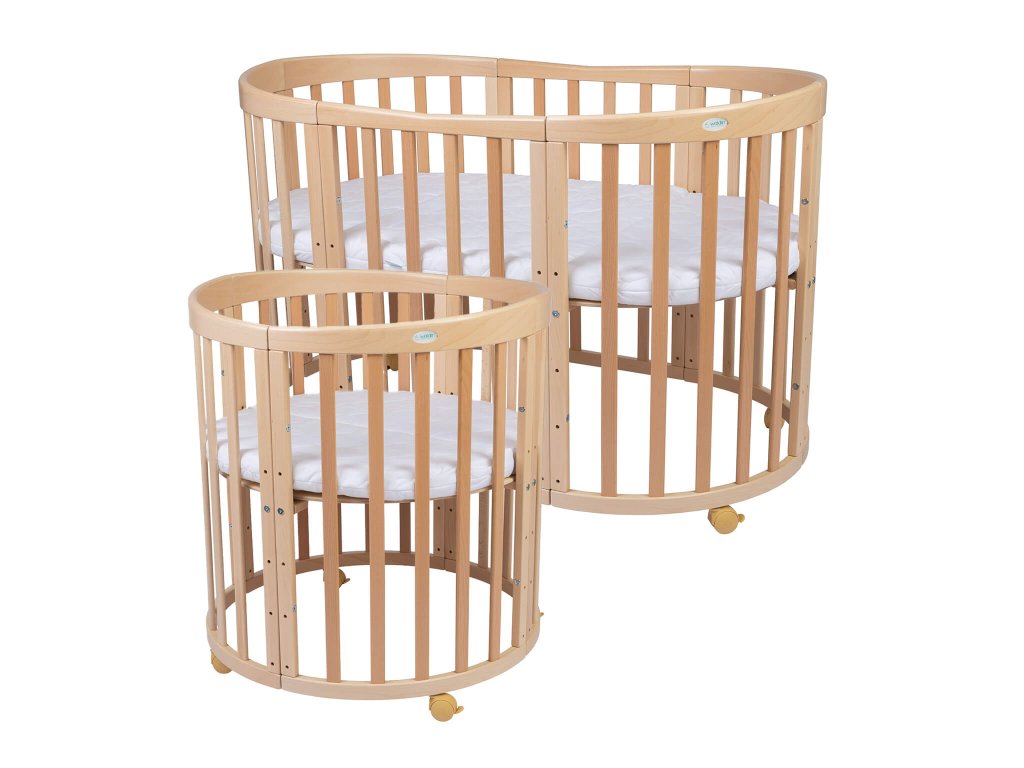 Praktični rastući krevetić 7u1 za roditelje koji vole multifunkcionalni namještaj koji traje godinama. Različite mogućnosti sastavljanja pojedinih dijelova okruglog rastućeg krevetića osiguravaju da ga možete koristiti za novorođenčad, ali i za desetogodišnju djecu. Način korištenja ovisi o dobi i potrebama djeteta. Nakon rođenja bebe možete prvo sastaviti pomoćni ležaj ili mali okrugli krevetić s pultom za presvlačenje. Ovalni rastući krevetić dostupan je u nekoliko boja.