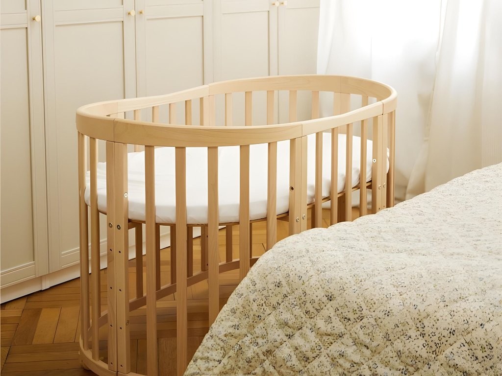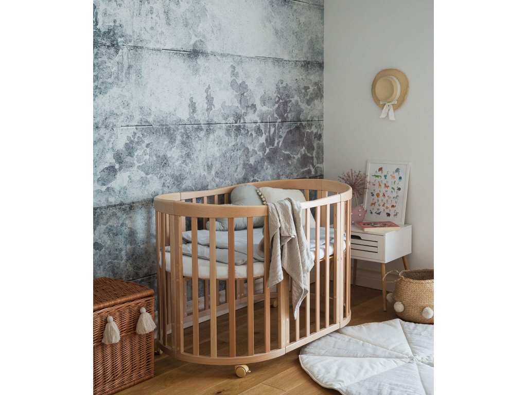 Dječji rastući ovalni krevetić s madracem Menty 7u1 - prirodni