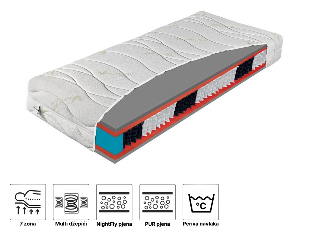 Materijalni sastav: Multipocket opruge 1000, Antibakterijska PUR pjena, NIGHTFLY pjena, navlaka