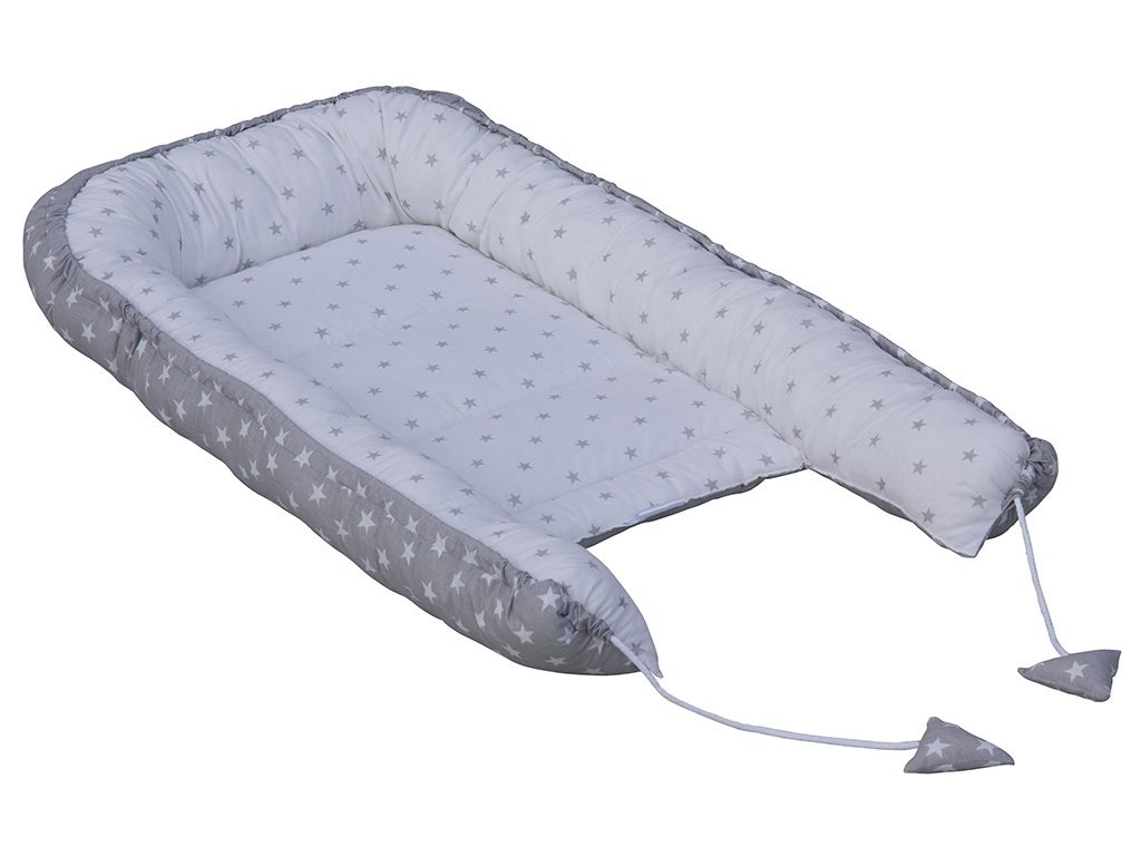 Za stezanje gnijezda u bočnim stranicama nalaze se vrpce, čime se stvara zatvoreni oval. Beba se u gnijezdu osjeća sigurno i sprječava prevrtanje djeteta izvan gnijezda. Izvrstan je pomoćnik posebno u prvim mjesecima života bebe.