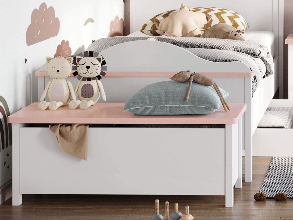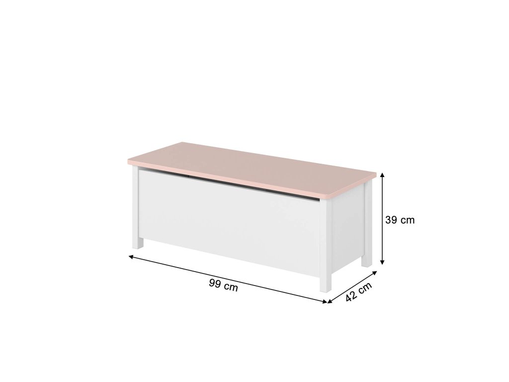 Multifunkcionalna škrinja za igračke LUNA osvojit će vas lijepom kombinacijom boja bijele i puderasto ružičaste. Postavite je uz krevet i možete u nju spremati ne samo igračke, već i deke ili posteljinu. Možete je koristiti i kao stol ili mjesto za sjedenje. Škrinja je izrađena od kvalitetne laminirane ploče (DTD) s izdržljivim ABS rubom.