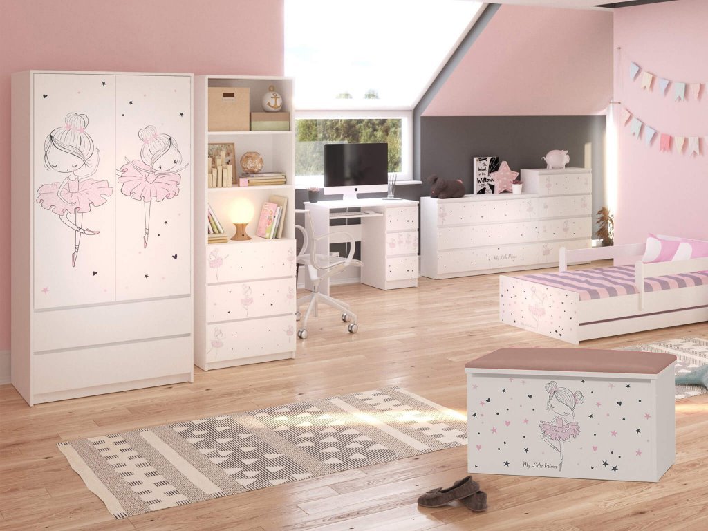 Kolekcija Ballerina je kao stvorena za vašu djevojčicu. Razigrane boje i decentan motiv daju namještaju bajkovit, ali istovremeno trendi izgled. Dječja soba za djevojčicu, uređena namještajem iz ove kolekcije, može postati pravo utočište na koje vaša kći neće morati biti sramna ni nakon nekoliko godina. Namještaj je izrađen od kvalitetne laminirane ploče (DTD). Zahvaljujući korištenim prirodnim materijalima, 100% je ekološki, siguran i bezopasan za zdravlje. Tisak je osiguran posebnim laminatom, zahvaljujući kojem se namještaj može jednostavno i bez brige očistiti deterdžentom. Kupnjom ostalih elemenata iz kolekcije Ballerina možete svojoj princezi stvoriti jedinstvenu dječju sobu.
