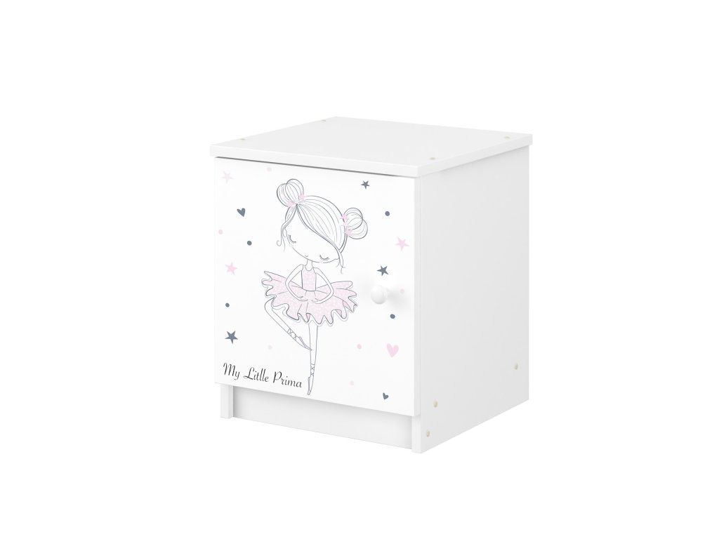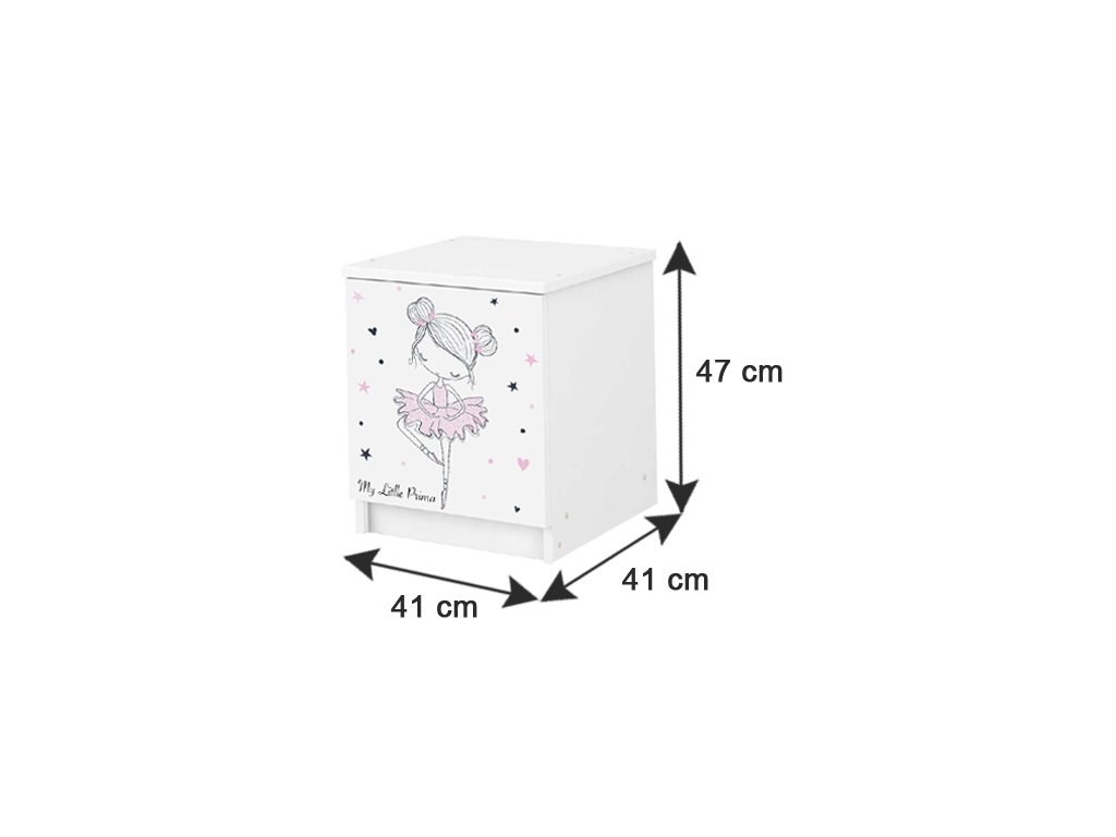 Noćni ormarić je odličan izbor uz dječje krevete iz kolekcije Ballerina. Osigurat će mjesto za čašu vode, budilicu ili dječje knjige. Ima veliki prostor za pohranu koji nije pregrađen policama.