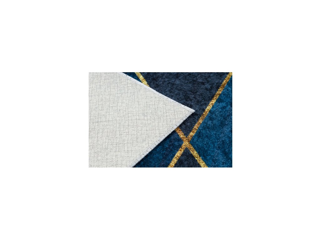 Tepih Miro Washable izrađen je od kvalitetnog 100% poliestera, što jamči njegovu dugotrajnost i otpornost na habanje. Zahvaljujući svojoj protukliznoj obradi siguran je na bilo kojoj površini, što ga čini idealnim za kućanstva s djecom ili kućnim ljubimcima. Njegov geometrijski dizajn u plavoj boji prostoru daje moderan i stilski izgled. Tepih je lako održavati jer ga možete jednostavno prati u perilici, što ga čini praktičnim izborom za svakodnevnu upotrebu. S debljinom od približno 5 mm pruža udoban osjećaj pod nogama, dok njegova niska težina omogućuje jednostavno rukovanje i premještanje. Ovaj pravokutni tepih dostupan je u različitim veličinama kako bi odgovarao vašim potrebama i preferencijama.