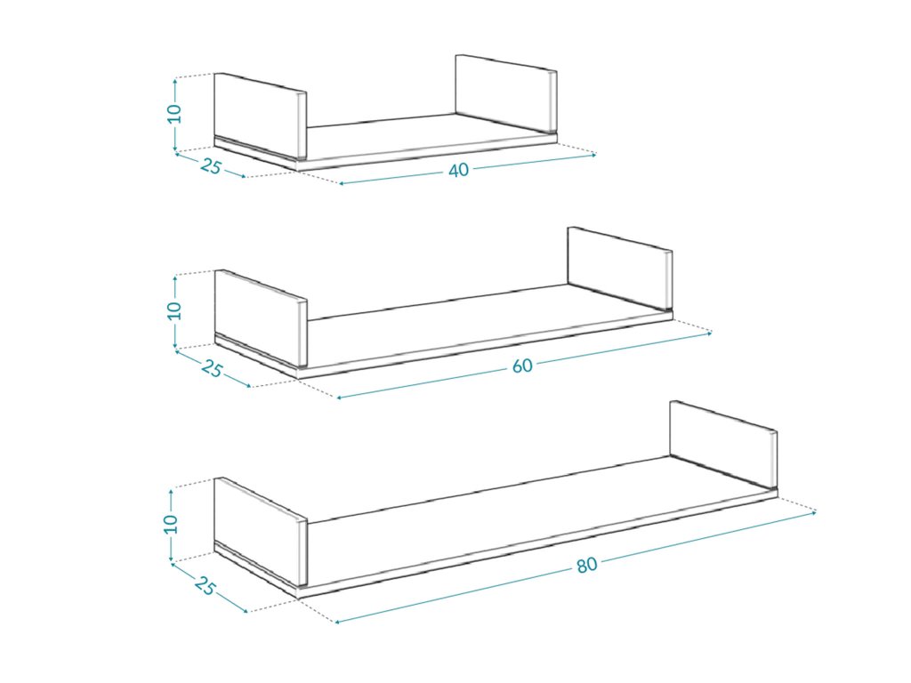Želite li da vaš dnevni boravak izgleda ugodnije? Nemate gdje smjestiti svoje omiljene fotografije ili knjige? Naše univerzalne viseće police Colli idealne su za svaki dom. Set tri viseće police privući će svakoga. Praktične police možete koristiti u kuhinji za začine, u dnevnom boravku za fotografije, u radnoj sobi za knjige, ali i u dječjoj sobi za razne trofeje ili igračke. Moderne police za zid možete objesiti u razmaku koji vam se sviđa. Police su bijele boje. Izrađene su od kvalitetne MDF ploče debljine 16 mm. Minimalistički dizajn lijepo će upotpuniti vaš interijer.