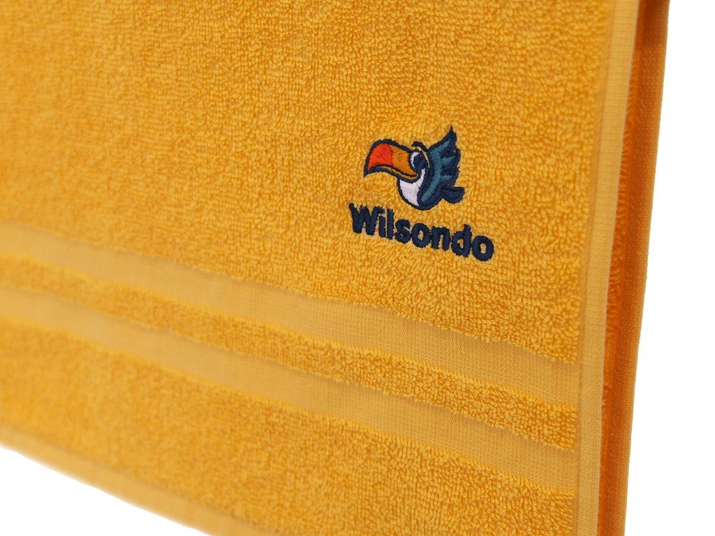Osvijetlite svoju kupaonicu svježom žutom! Ručnik Wilsondo s dimenzijama 50×100 cm izrađen je od 100% frotir pamuka, poznatog po svojoj mekoći i izvrsnoj upijajućoj sposobnosti. Zahvaljujući gramaturi 400 g/m² i ojačanoj dvostrukoj petlji, ručnik je izdržljiv, ali istovremeno lagan i udoban za svakodnevnu upotrebu. Kvalitetna izrada upotpunjena je preciznim šivanjem i diskretnim logom Wilsondo, koji mu daje moderan izgled. Žuti ručnik idealan je za dom, putovanja, ali i za saunu ili sportsku torbu.