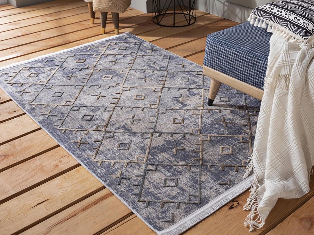 Luksuzni tepih Beid u dnevnoj sobi, spavaćoj sobi ili čak kuhinji donosi toplinu i udobnost domu. Tepih se odlikuje ne samo prekrasnim izgledom, već i otpornošću i praktičnošću. Tepih Beid savršeno se uklapa u moderne interijere i svugdje gdje svakodnevno prolazi mnogo ljudi, na primjer u dnevnoj sobi. Takav tepih savršeno će naglasiti cijelu stilizaciju, zaštititi pod čak i od brzog trošenja. Za osiguranje maksimalne sigurnosti, tepih je opremljen posebnom protukliznom gumenom donjom stranom. Zahvaljujući tome, tepih je stabilan, dobro prianja uz podlogu, i u kutovima se ne uvija. Korišteni materijali 60% pamuk + 40% poliester prikladni su za klasično pranje u perilici na 30 stupnjeva.