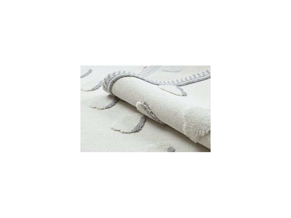 Stvorite ugodnu i razigranu atmosferu u dječjoj sobi s našim sivo-bijelim dječjim tepihom Chmurky. Ovaj tepih je dizajniran s nježnim oblačnim uzorcima koji će sobi dati miran i ugodan izgled. Izrađen od poliestra, ne samo da je mekan na dodir, već je i izdržljiv i lako se održava. Pravokutni oblik i nježne rese na rubovima dodaju njegovom estetskom izgledu. Idealan za djecu koja će uživati u njegovoj strukturiranoj i senzornoj površini. Strukturirani tepih ima površinu s različitim visinama i teksturama vlakana koje stvaraju zanimljiv vizualni i taktilni efekt.