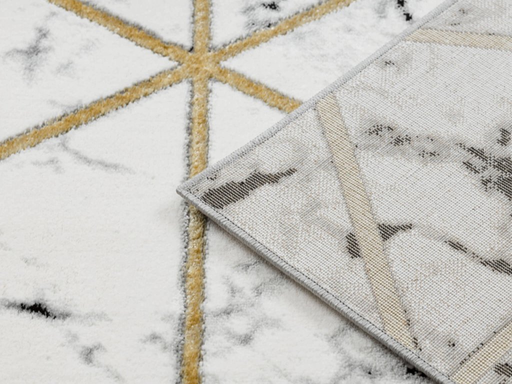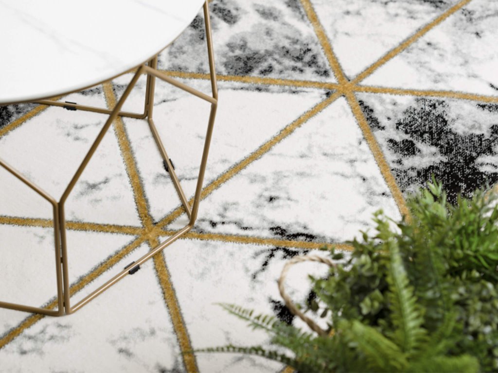 Ako je vaš dnevni boravak u glamuroznom stilu, prikladno ga je dopuniti s tepihom koji će vam stvoriti toplije i ugodnije okruženje. Tepih Emerald je u sivo-zlatnoj boji, koji ima mramorni dizajn zajedno sa zlatnim elementom. Zlatni elementi dodaju na eleganciji. Srednje duga vlakna na tepihu imaju 12 mm i njegovo održavanje je jednostavno pomoću usisavanja. Zahvaljujući kombinaciji polipropilena i skupljajućeg poliestera, tepih Emerald je izdržljiv, otporan na habanje i ugodan na dodir. Tepih se može sigurno koristiti zajedno s podnim grijanjem. Bit će izvrstan dodatak modernim interijerima.