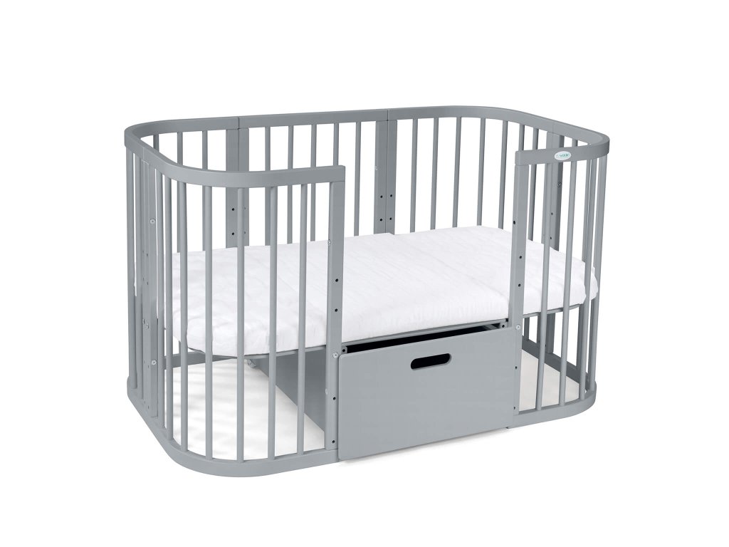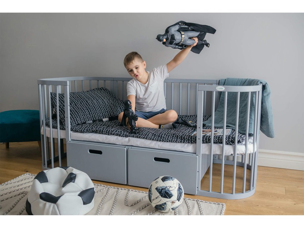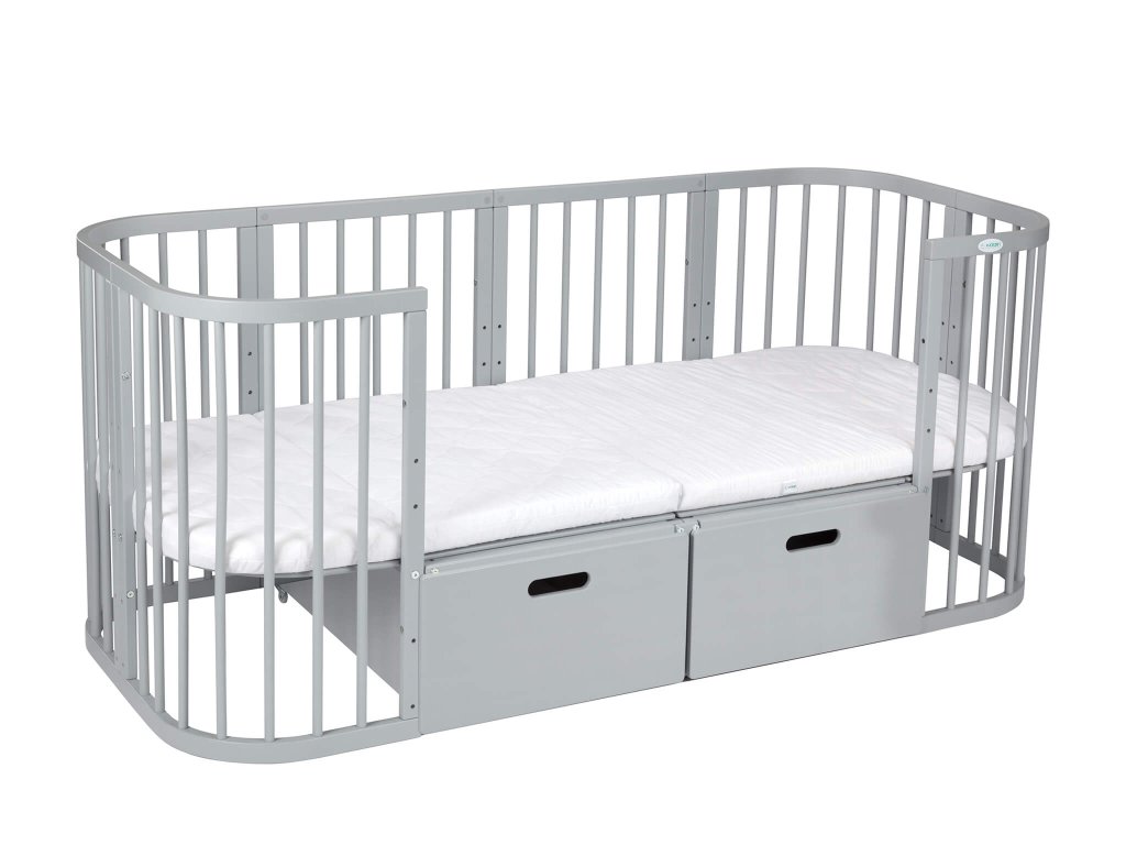Ako želite da vam ispod krevetića stanu dva siva spremnika, trebate kupiti proširenje za krevetić 7u1.