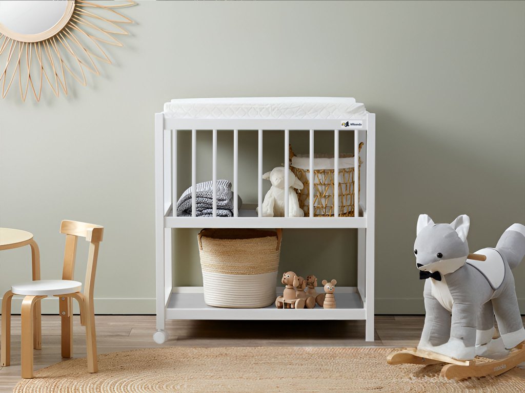 Preklopni stol Anima je praktičan pomoćnik koji zahvaljujući dvama kotačićima možete premjestiti tamo gdje vam je potrebno. Stol vam pruža dovoljno prostora za pohranu, jer se ispod njega nalaze još dvije police. Odaberite iz široke ponude podloga za previjanje.