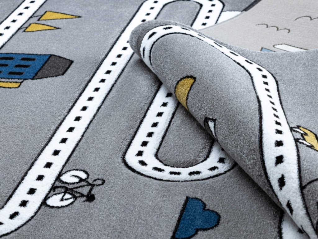 Dio svake dječje sobe trebao bi biti upravo tepih. To je estetski dodatak i istovremeno služi kao zaštitni element za vašu djecu. Dječji tepih s motivom Gradića jednostavno će se uklopiti u svaku dječju sobu. Djeca se mogu sigurno igrati na tepihu, a istovremeno tepih stvara bolju toplinsku izolaciju. Tepih za djecu s motivom Gradića sastoji se od vlakana čija je gustoća 2500g/m2 tipa Frieze. Visina vlakna je 13 mm, tj. radi se o srednje dugom vlaknu. Vlakno od kojeg je tepih izrađen je 100% polipropilen (PP), koji je mekan i elastičan zahvaljujući svojoj toplinskoj obradi. Odlikuje se otpornošću na habanje. Ono što ćete sigurno cijeniti je jednostavno održavanje. Dostupan je u više dimenzija.