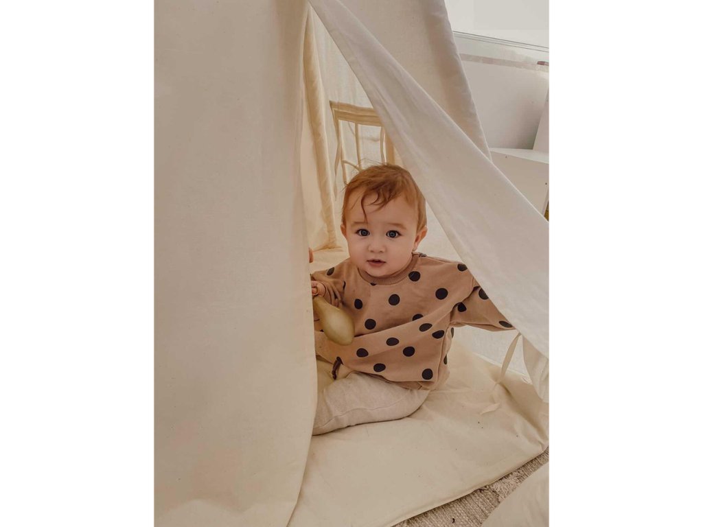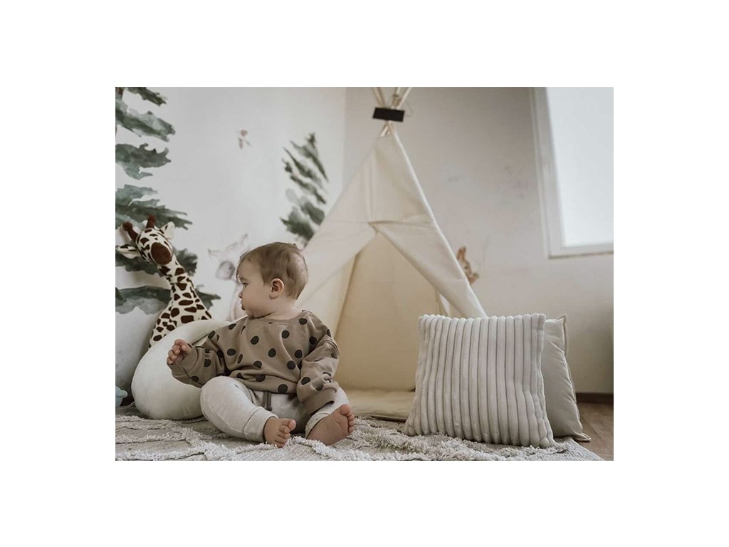 Čarobni svijet, bajkoviti likovi ili beskonačna dječja mašta? Sve to mali čovječuljak može razvijati u svom dječjem kraljevstvu, a zahvaljujući teepee šatoru imat će jedinstveno mjesto koje će pripadati samo njemu. Teepee šator je odličan za popodnevni odmor, igru ili čitanje bajki. Pogodan je kao prijenosna kućica, gdje će mališan doživjeti mnogo avantura. Šator je izrađen od kvalitetnog materijala u neutralnoj boji, s debelom podlogom i jastucima.