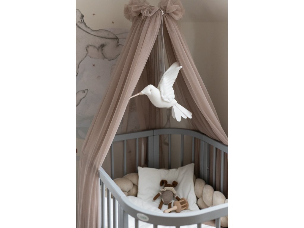 Fini baldahin od tila za rastući krevetić 7u1 u ovalnom i četvrtastom obliku. Baldahini, dječja posteljina i svjetiljke su izvrstan način kako uljepšati dječju sobu. Baldahin montirate iznad krevetića pomoću metalnog stalka koji se nalazi u pakiranju. Ovaj elegantni dodatak iznad dječjeg rastućeg krevetića izrađen je od finog tila, koji se može prati na 30°C. Preporučujemo da baldahin nakon pranja objesite kako bi se sam lijepo ispravio i ne glačajte ga. Baldahin od tila dostupan je u nekoliko boja kako biste ga mogli lijepo uskladiti s vašim rastućim krevetićem 7u1.