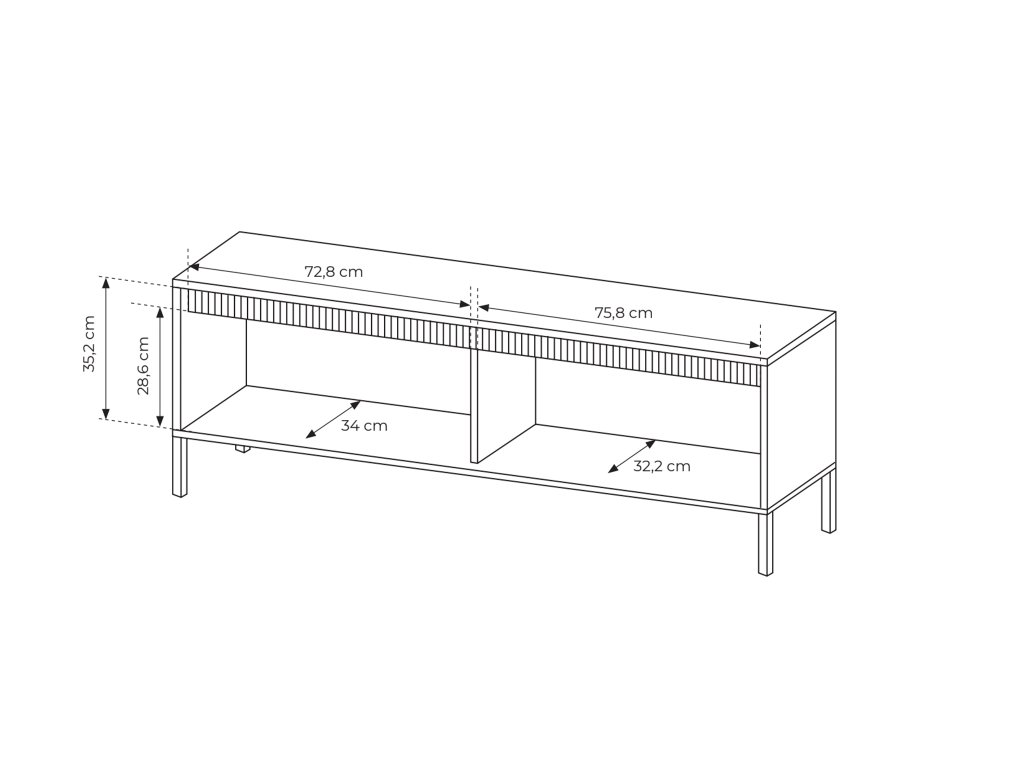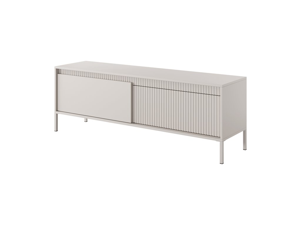 TV stolić SENSO D RTV153 je izvanredan komad namještaja koji će unijeti u vaš dnevni prostor elegantan i stilski dodir. Njegova nježna bež boja kombinirana je s tankim metalnim nogama, koje mu daju moderan izgled i istovremeno osiguravaju stabilnost. Stolić je opremljen s dvije ormariće sa sustavom otvaranja pritiskom, koji omogućuju jednostavan i brz pristup vašim stvarima, dok dvije ormariće pružaju dovoljno prostora za televizijsku tehniku i dodatnu opremu. Izrađen je od kvalitetne laminirane ploče s ABS rubovima, što osigurava dugotrajnu otpornost i trajnost. Sveukupno, ovaj moderni TV stolić idealno je rješenje za one koji traže stilski, praktičan i kvalitetan namještaj za svoju dnevnu sobu.