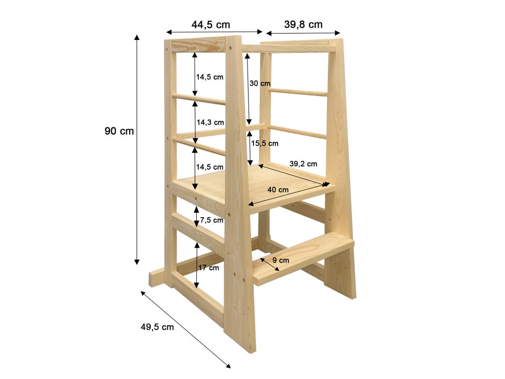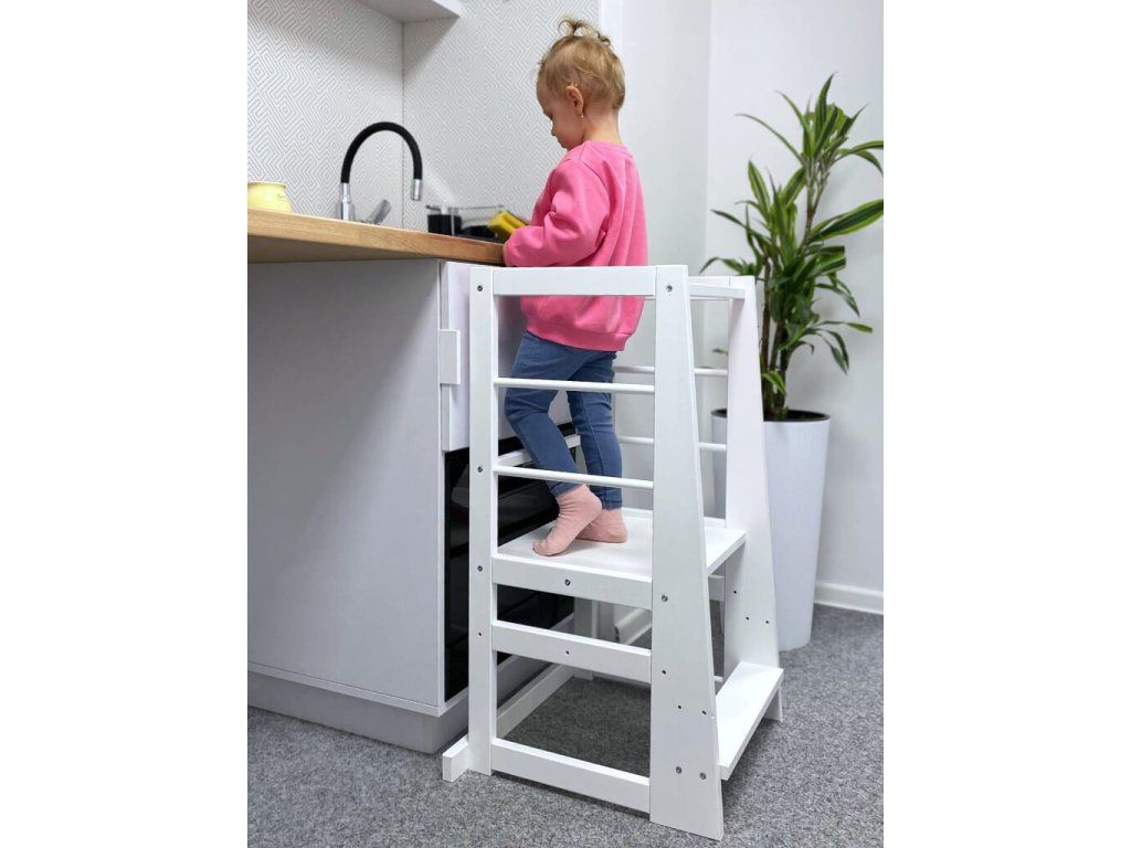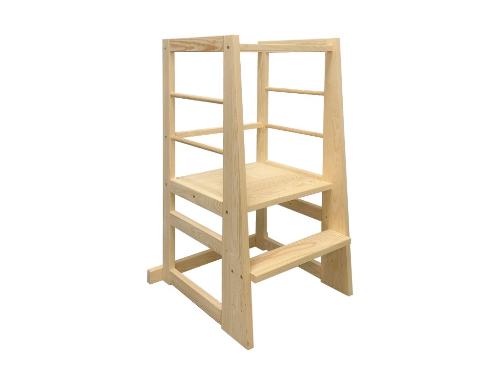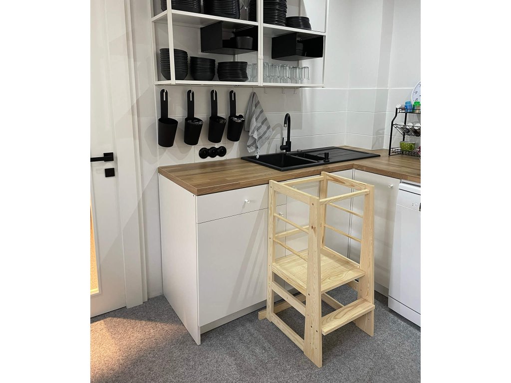 Uključite svoju djecu u kuhinji na zabavan i kreativan način s montessori igračkom. Pomoći će vam učeći toranj Groot od borovog drveta. Djeca uvijek žele vidjeti što se događa i biti dio svega što rade i roditelji. Zahvaljujući učećem tornju uz kuhinjsku ploču, ne samo da će vidjeti što se gore događa, već ih možete postupno uključivati u neke aktivnosti. Uključivanje djece u kuhinji pomaže u razvoju motoričkih vještina, a uz pripremu ih možete naučiti mnogo o hrani, namirnicama ili sigurnosti u kuhinji. Učeći toranj je prikladan za djecu do 3 godine.