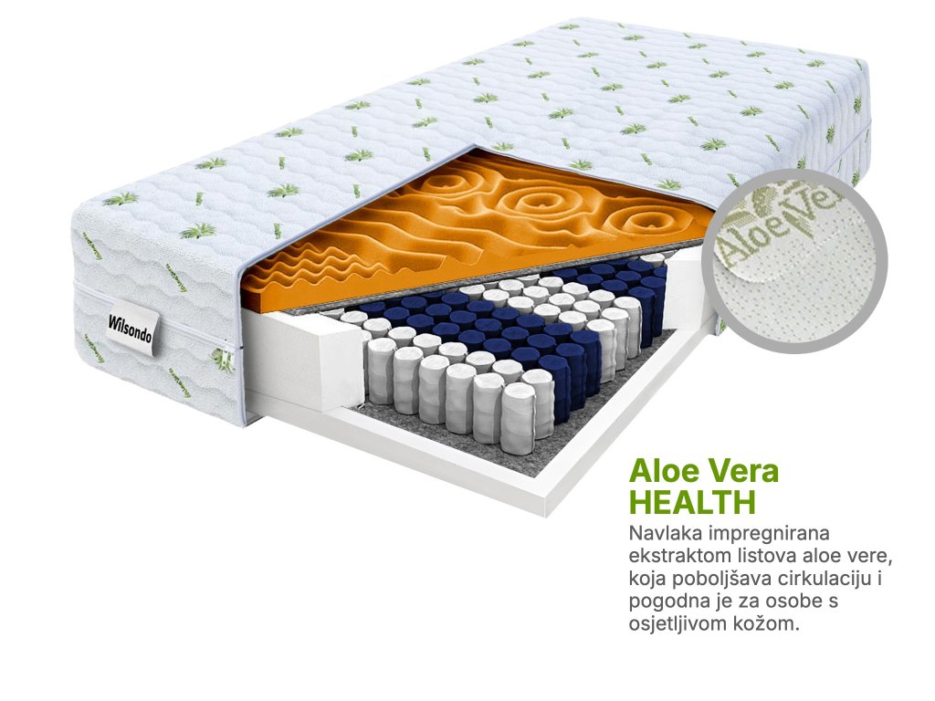 Materijalni sastav: Filc, Džepičaste opruge(više od 289 opruga/m2), Poliuretanska pjena T25 s gustoćom 25 kg/m3, Navlaka Aloe Vera