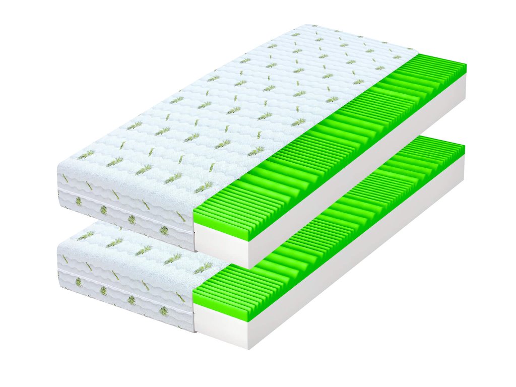 Popust na pakiranje od dva madraca Brave 200x80 s visinom do 21 cm, idealnih za bračni krevet 200x160, krevet na kat ili dva obična kreveta. BRAVE pjenasti madrac bez opruga kombinira prednosti iz dva različita pjenasta sloja. Kvalitetna PUR pjena T25 s gustoćom 25 kg/m3 pruža madracu udobnu osnovnu visinu i dugoročno zadržava otpornost na deformacije. Gornji dio madraca prekriven je anatomski zoniranom profiliranom pjenom koja nježno masira kožu i mišiće, pružajući dodatnu relaksaciju tijekom sna. Otvorena stanična struktura osigurava stabilnu prozračnost oba pjenasta sloja i učinkovito sprječava razvoj bakterija, grinja i drugih mikroorganizama. Madrac BRAVE dugoročno zadržava svježinu. S antialergijskom navlakom Aloe Vera na patentni zatvarač, koja je periva u perilici na 30 °C, ovaj madrac nije samo udoban, već i lako održiv.