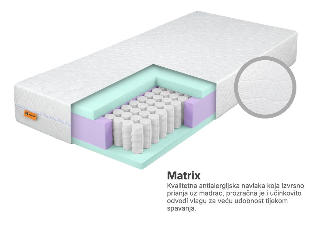 Sastav materijala: pjena Aloe Vera, džepićaste opruge, filc, navlaka Matrix