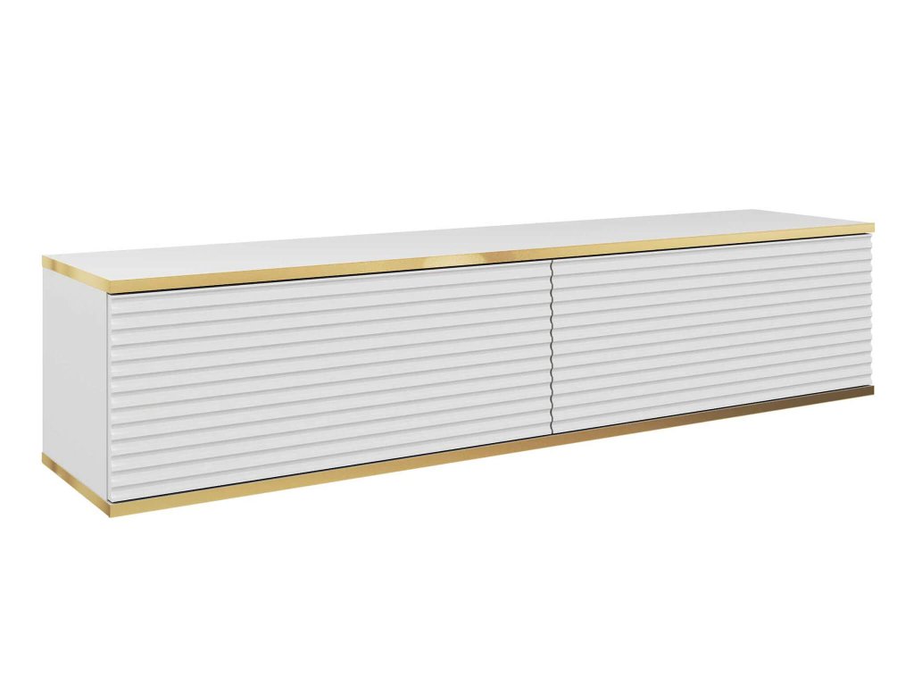 Naručite TV ormarić Oro, koji predstavlja moderan komad namještaja koji kombinira funkcionalnost s elegancijom. Njegova sjajna bijela boja prostoru daje očaravajući izgled, dok širina od 135 cm pruža dovoljno mjesta za vašu televizijsku opremu i druge uređaje. Tijelo ormarića izrađeno je od laminirane iverice i obrubljeno ABS rubovima, što jamči trajnost i otpornost na oštećenja. Ormarić ima dva preklopna ormarića s urezanim vratima od MDF ploče. Ovaj detalj dodaje namještaju teksturu i zanimljiv vizualni efekt. Zlatni obrub na rubovima ormarića dodaje suptilan akcent i upotpunjuje luksuzni dojam. Oro je dizajniran tako da se objesi na zid, što stvara iluziju prostranog prostora i omogućuje lako čišćenje ispod njega. Njegov push-to-open sustav bez ručki doprinosi čistom i minimalističkom dizajnu, gdje je dovoljan lagani pritisak za otvaranje ormarića. Rezultat je TV ormarić koji kombinira moderne elemente, praktičnost i estetiku. Oro će postati središnja točka vašeg dnevnog boravka i unijeti u njega dodir elegancije i stila.